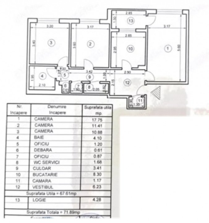 Va prezentam un apartament confort 1, decomandat, 3 camere, 2 bai, 3 camari, 1 balcon , gaze separat, apometre, etaj 8 din 8, suprafata 71.89 mp, an constructie 1982.